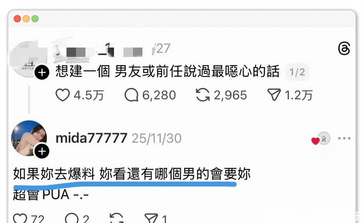不过,网友们现在恼火的是mida说的劈腿事件及PUA事情。