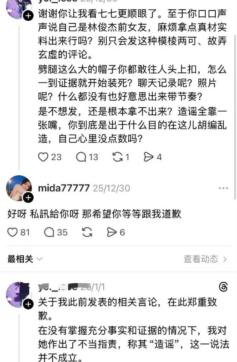看到这则动态,有网友表示mida口口声声说是林俊杰的前女友,但是实际证据都没有,最起码的聊天记录和照片都没有,怀疑mida是蹭热度。