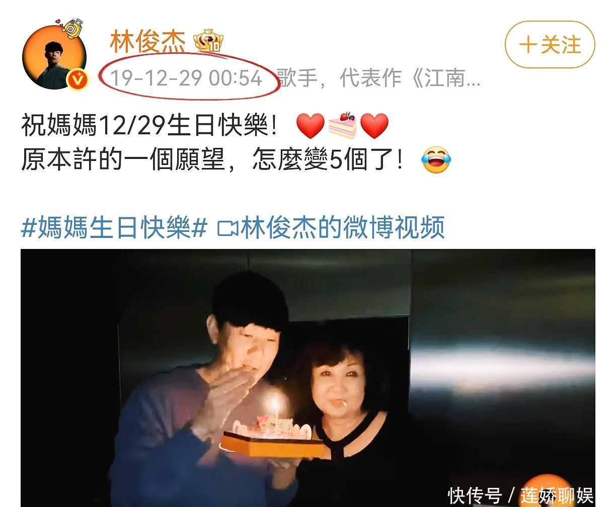 通过该庆生照,网友们发现这是2019年12月29日林俊杰为母亲庆生的照片,因为林俊杰及母亲的衣服,与林俊杰当天在社交平台发布的庆生视频是一模一样的。